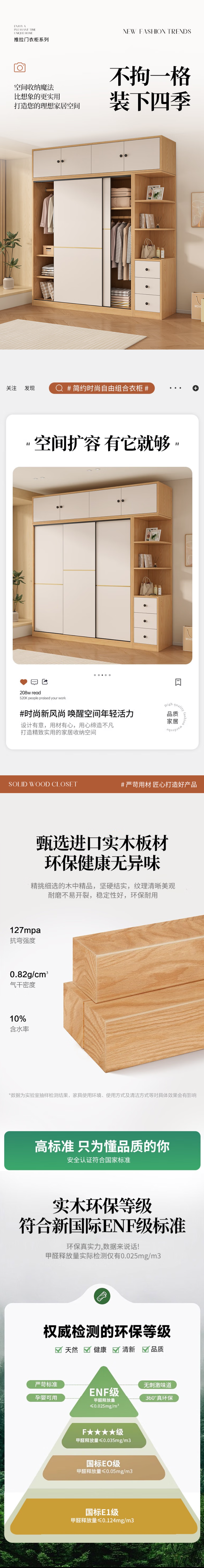 首页 >> 旭彩ENF级实木 衣柜卧室推拉门收纳柜现代简约储物柜组合全实木衣柜